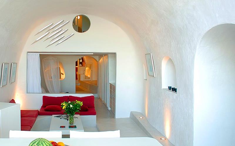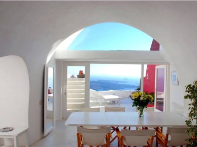 Santorini Cliff House ligger i den pittoreska lilla byn Imerovigli och anses vara bland de vackraste husen på hela ön. Just Santorini är enligt många Greklands mest bildsköna ö, känd för sina fantastiska vyer och inte minst de spektakulära solnedgångarna. Öns dramatiska form är resultatet av ett gigantiskt vulkanutbrott för flera tusen år sedan. Då bildades calderan – en djup lagun omgiven av bergväggar som stupar rakt ner i havet. Den här underbara bostaden i Imerovigli inkluderar naturligtvis en magisk utsikt över Medelhavet, stora terrasser, härliga sovrum och uppvärmd utomhusjacuzzi. Vad kan man mer önska sig?