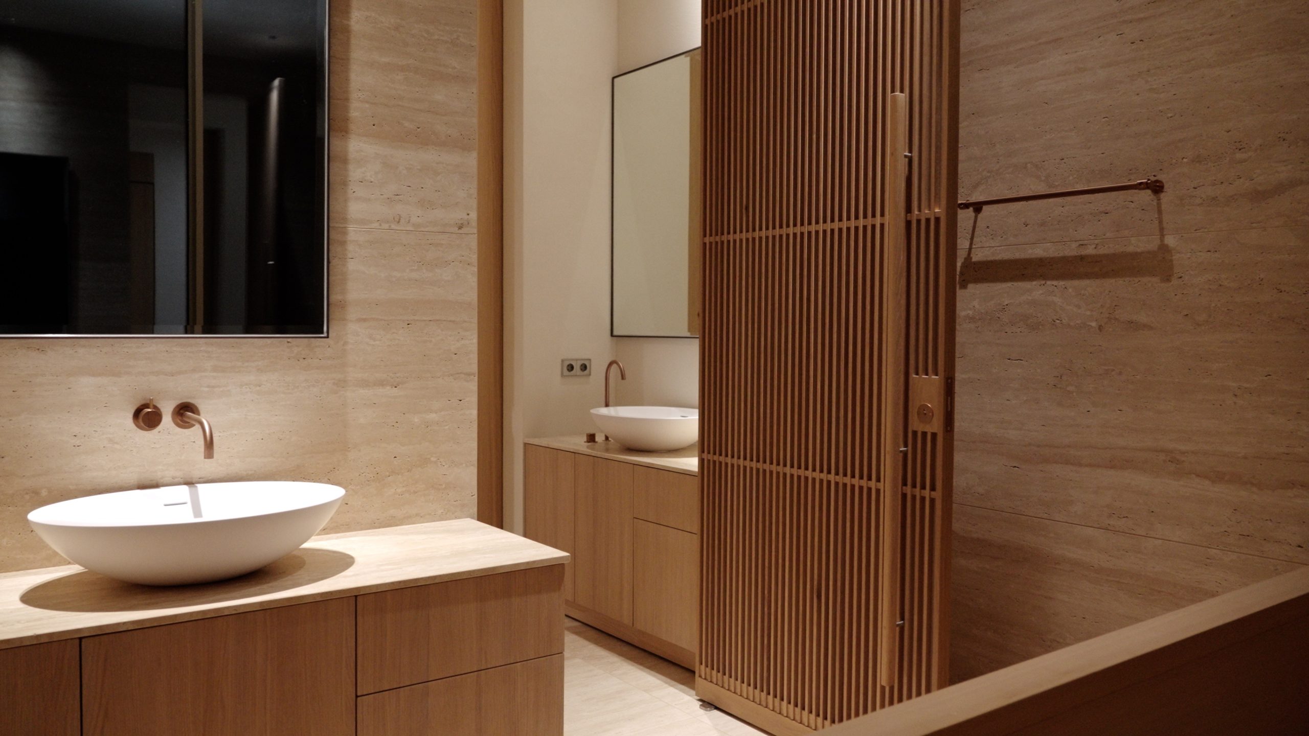 Natural materials define the atmosphere: stone, wood, and glass come together with a sense of restraint and depth. The furniture echoes these gestures with soft, fluid lines that encourage reflection and stillness rather than distraction.